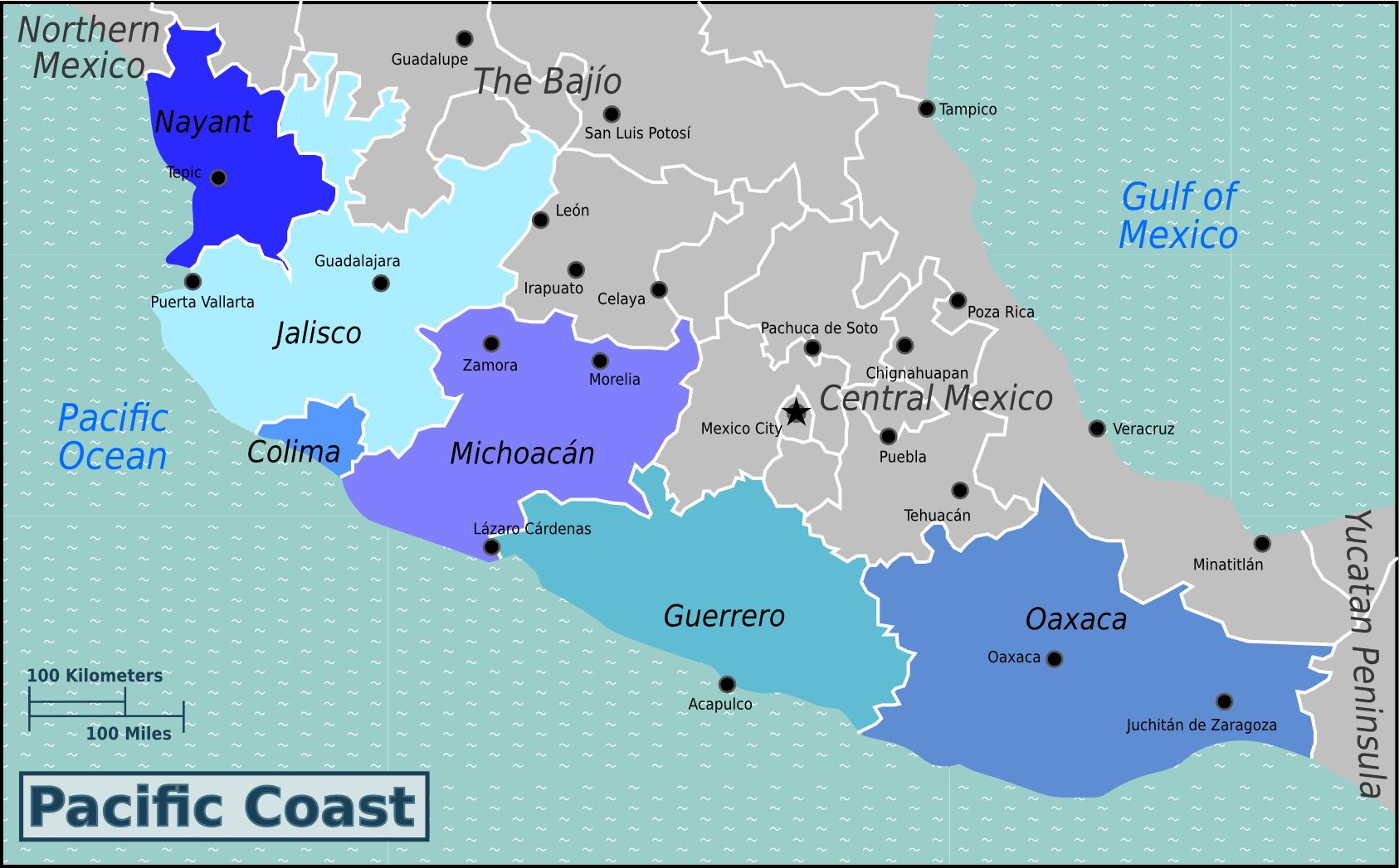 نقشه از pacific coast of Mexico. مکزیک و اقیانوس آرام در سواحل نقشه (مرکزی آمریکا - آمریکا) برای چاپ. مکزیک و اقیانوس آرام در سواحل نقشه (مرکزی آمریکا - آمریکا) برای دانلود.